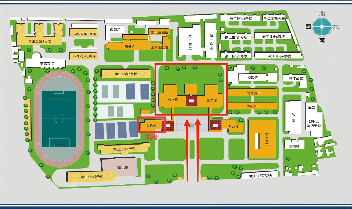 除机考外,笔试均安排在学院南路校区主教学楼(下图所示)进行。机考将安排在学院南路校区实验楼进行。