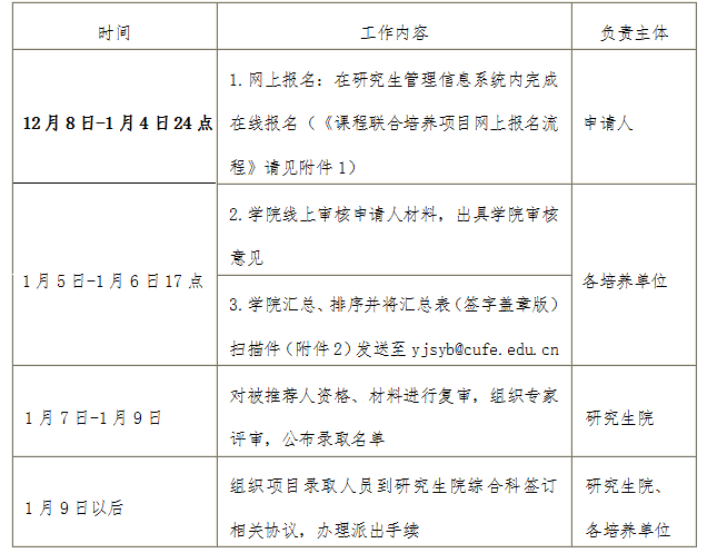 (三)派出研究生除按时、保质、保量完成联合培养计划内容外,须在学成回校后一个月内提交4000字左右的项目学习总结及相关图像资料(含学习、学术、实践、实训等交流活动照片),电子版内容发送至yjsyb@cufe.edu.cn。