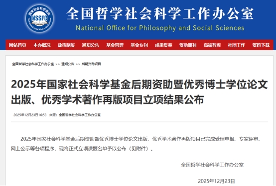 全国哲学社会科学工作办公室http://www.nopss.gov.cn/n1/2025/1223/c431030-40630570.html