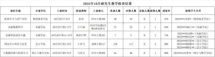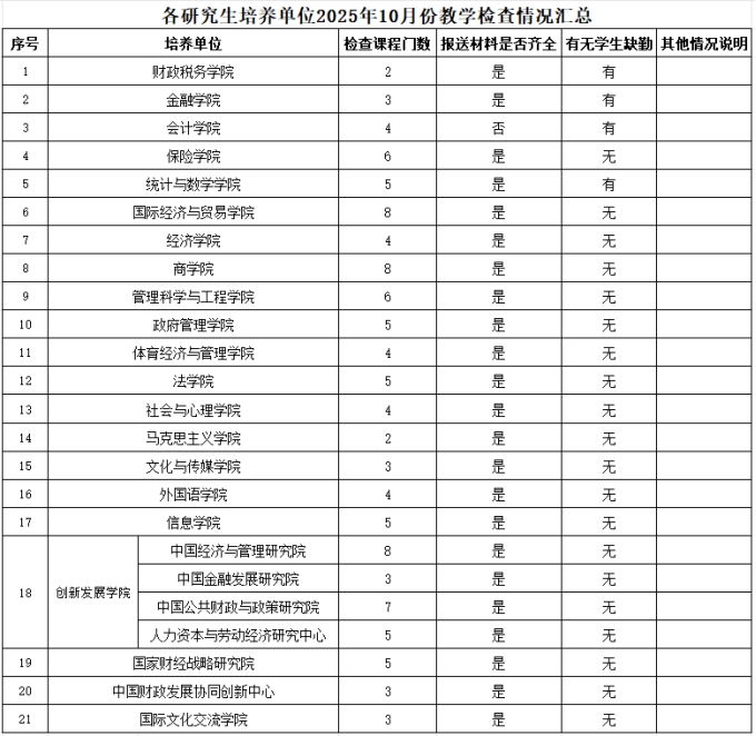 现将2025年10月份各单位上报教学检查及缺勤情况进行通报:
