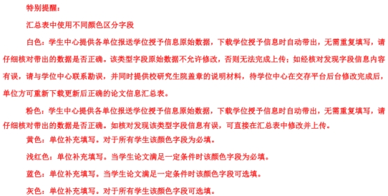 为尽量减少论文交存过程中的工作量,平台将从学生中心学位授予信息管理系统获得学位授予信息数据。各培养单位可通过平台下载相关数据表,核对平台数据是否准确,已有数据无需重复上报。如发现论文题目、所属学科、专业、研究方向、关键词、作者及导师信息等获取不全、有误的,由培养单位负责补充完整和勘误。如发现所属学科、专业、作者及导师信息有误的,须报备研究生院,申请学位信息备案勘误。