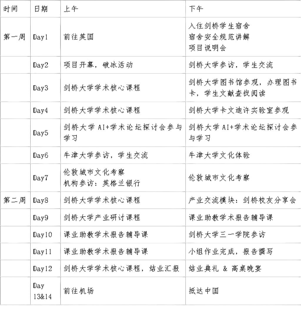 费用包含:课程费、参访交流活动费、场地费、剑桥大学宿舍住宿费、保险费、行程内外出交通费、全程领队费、早餐费等。
